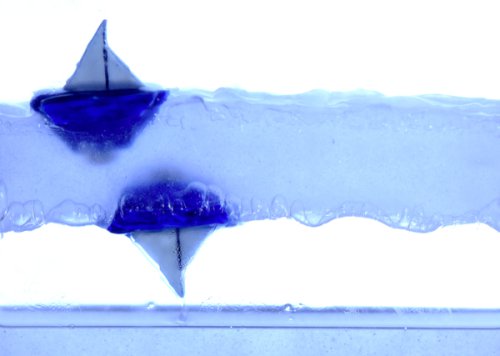 Sous l’action de la gravité, des liquides dans un récipient vont avoir tendance à tomber au fond du récipient, les plus denses en premier lieu. Pourtant, comme le montrent les chercheurs de l’Institut Langevin et du laboratoire PMMH, faire vibrer un liquide verticalement permet de le faire léviter au dessus d’une couche d’un fluide moins dense, comme un coussin d’air par exemple. Plus étonnant, cette vibration va aussi entraîner une flottabilité à l’interface inférieure du liquide en lévitation, comme si la gravité était inversée. Les chercheurs ont testé plusieurs liquides, comme de l’huile de silicone ou du glycérol (avec une forte viscosité) et sont ainsi parvenus à faire flotter un petit bateau à l’interface inférieure du liquide en lévitation.