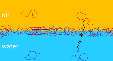 L’un des polymères est solubilisé dans l’eau, l’autre se trouve dans l’huile et lorsque les chaînes se rencontrent à l’interface eau-huile, elles forment des liaisons hydrogène et donc une membrane interfaciale. Dans un article précédent, cette équipe avait montré que lorsque les deux phases eau et huile sont émulsifiées, cette membrane permet de stabiliser des émulsions de gouttelettes d’huile dans l’eau tables sur plusieurs semaines, voire des mois.