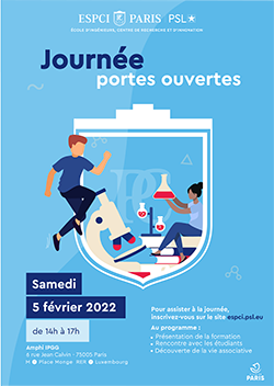 Le samedi 5 février de 14h à 17h, l’école ouvre ses portes, avec un tour d’horizon de sa formation : enseignement, méthode pédagogique,cursus, vie associative et étudiante.