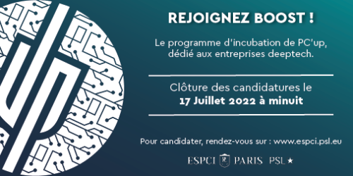 Fort de la culture entrepreneuriale de l’ESPCI Paris – PSL, PC’up accompagne depuis 2016 les chercheurs-entrepreneurs en s’appuyant sur les points forts de l’ESPCI et de son écosystème d’innovation. Notre mission est de faciliter la création d’entreprises deeptech, en entourant les entrepreneurs des compétences uniques de l’ESPCI.