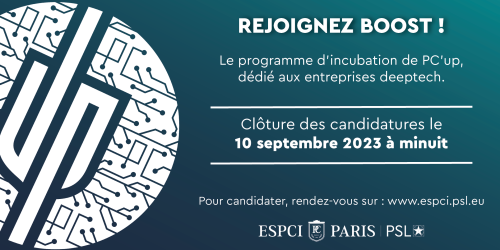 Fort de la culture entrepreneuriale de l’ESPCI Paris – PSL, PC’up accompagne depuis 2016 les chercheurs-entrepreneurs en s’appuyant sur les points forts de l’ESPCI et de son écosystème d’innovation. Notre mission est de faciliter la création d’entreprises deeptech, en entourant les entrepreneurs des compétences uniques de notre écosystème.