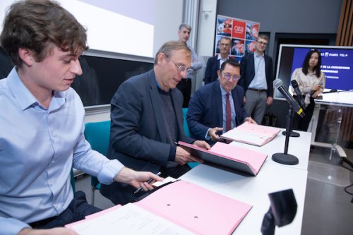 Signature de la convention de parrainage entre le CEA, la Direction de l’école et le Bureau des élèves.