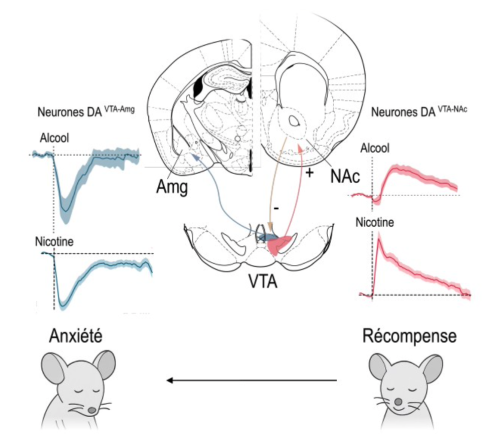 La nicotine et l’alcool activent une boucle de rétrocontrôle inhibitrice entre les circuits dopaminergiques de la récompense et de l’anxiété