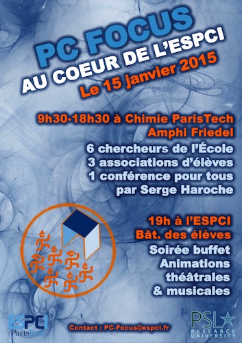PC-Focus est une journée dédiée à tous les acteurs de l’ESPCI : chercheurs, élèves-ingénieurs, et tous les personnels de l’École.