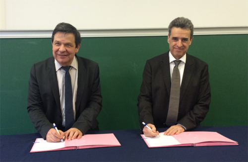 Ce partenariat, signée par Jean-François Joanny, Directeur Général de l’ESPCI et Jean-François Minster, Directeur scientifique du groupe Total, permettra de continuer à soutenir à la fois l’enseignement à l’école (à travers des bourses pour les élèves notamment), mais aussi la recherche menée dans les différents laboratoires de l’école.