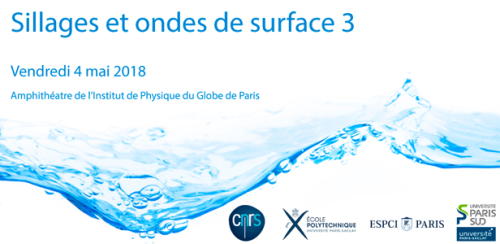 Suite au succès des éditions 2016 à l’Université Paris-Sud et 2014 à l’ESPCI Paris, venez participer à la 3ème édition de notre journée thématique "Sillages et Ondes de Surface", le vendredi 4 mai 2018 à l’amphithéatre de l’Institut de Physique du Globe de Paris.