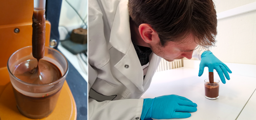 Even with chocolate, it's possible to measure the coating thickness on a rod, or on a finger!