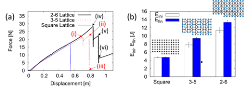 The toughening of sparse elastic networks, such as hydrogels, meshes, nets, and knitted fabrics, is one of the most important problems in materials science. For example, hydrogels were considered brittle materials because of their sparse structures, and many efforts have been made by polymer scientists to improve the toughness. Owing to their efforts, novel types of tough hydrogels have been developed in the last decade, and the toughening mechanisms such as “sacrificial bonds” [1] and “movable crosslinking points” [2] are known to work well. However, little attention has been paid to other aspects.