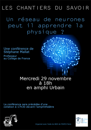 Les chantiers du savoir sont un cycle de conférences organisées à l’ESPCI par Elie Raphaël et Jérôme Lesueur, en lien avec le BDE ESPCI Paris. Depuis plusieurs années, de prestigieux intervenants sont venus enthousiasmer les étudiants de l’école !