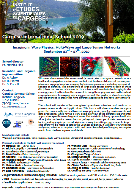 Du 23 au 27 Septembre se tiendra à l’Institut d’études scientifiques de Cargèse en Corse une école d’été sur sur l’imagerie en physique des ondes : les réseaux multi-ondes et à large spectre de détection.