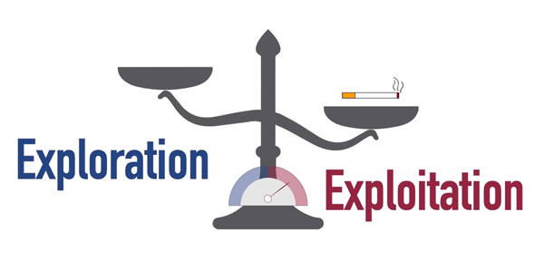 Pour répondre à cette question, des scientifiques ont testé, chez la souris, l’effet d’une exposition chronique à la nicotine sur la prise de décision dans un contexte qui n’est pas lié à la consommation de drogue. Ils ont analysé les choix des animaux dans une expérience mimant les machines à sous d’un casino : en se déplaçant librement dans une arène circulaire, l’animal peut choisir de s’arrêter sur trois petites aires, A, B et C, chacune lui délivrant une récompense avec une probabilité différente (détail en figure 1) . Ils ont ainsi mis en évidence plusieurs stratégies, allant de l’exploitation des zones où les probabilités de récompense sont les plus fortes , à l’exploration, caractérisée par des choix plus variables et une visite plus fréquente des zones associées à des probabilités de récompense plus faibles . Les résultats montrent que les souris exposées à la nicotine développent une préférence pour une stratégie d’exploitation des sites ayant les probabilités de récompense les plus élevées . Elles adoptent donc un comportement plus optimal que les autres en termes de récompense, mais aux dépens de l’exploration d’options en apparence moins rentables à court terme, mais qui sont pourtant nécessaires pour mieux comprendre l’environnement et s’adapter aux changements à long terme. En outre, les chercheurs montrent que l’exposition chronique de ces animaux à la nicotine produit aussi une augmentation de l’activité spontanée des neurones dopaminergiques. Pour tester si cette augmentation d’activité suffit à impacter les stratégies d’exploitation ou d’exploration des souris, les scientifiques ont utilisé une technique optogénétique pour stimuler ou inhiber artificiellement ces neurones avec de la lumière. La stimulation a rendu les souris plus exploitantes, mimant ainsi les effets observés chez les animaux sous nicotine, tandis que l’inhibition de ces neurones a rendu les souris plus exploratrices.