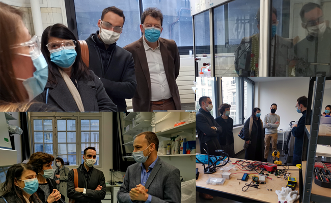 « À l’ESPCI Paris PSL, le leitmotiv commun est l’envie de servir la société ». Le 29 janvier 2021, Vincent Croquette, directeur de l’école d’ingénieurs, a accueilli par ces mots Pénélope Komitès , Adjointe à la Maire de Paris en charge de l’Innovation et de l’Attractivité et Marie-Christine Lemardeley, Adjointe à la Maire de Paris en charge de l’enseignement supérieur et de la recherche et présidente de l’ESPCI Paris – PSL. Les deux élues ont rencontré des chercheurs et des startuppeurs qui portent cet état d’esprit à l’école : nouveaux matériaux pour assainir l’air ambiant au laboratoire IMAP, technologie quantique chez C12 Quantum Electronics, ou encore outils pour remplacer les produits phytosanitaires par des intrants biologiques avec Kapsera.