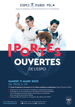 Des informations sur le diplôme d’ingénieurs ESPCI, ses voix d’accès, ses débouchés, ou encore les bourses d’aide Joliot, la vie sur le campus… vous obtiendrez toutes les réponses à vos questions pour faire un choix éclairé pour votre avenir.