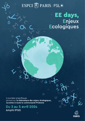 Du 3 au 5 avril, les EE days reviennent pour une 3e édition en amphi IPGG avec un programme qui permettra à tous et toutes de s’intéresser à la question des enjeux écologiques en lien avec la recherche à l’école mais pas seulement :