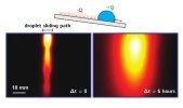 A team of researchers [1] has now shed light on this phenomenon using an unprecedented electrostatic mapping technique, capable of tracking charges left in a droplet’s wake over both time and space. The results are striking: rather than remaining confined to the initial trail, these charges spread rapidly across the entire surface. Their lateral mobility is so high that it even exceeds that of ions in aqueous solution, contrary to the expected slowdown due to contact with the solid.