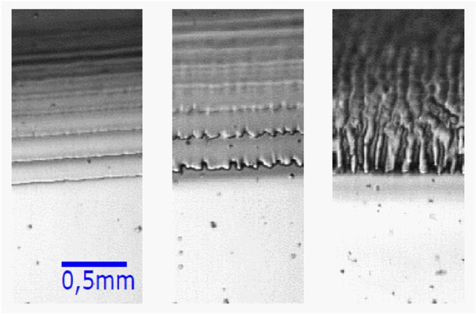 La rupture stick-slip d’un ruban adhésif correspond à une instabilité dynamique de rupture impliquant un couplage entre l’élasticité du ruban et la dépendance non monotone de l’énergie d’adhésion avec la vitesse de pelage. La raideur du ruban, et donc sa longueur, joue ainsi un rôle important. Nous avons observé que l’angle de pelage, dont l’influence a été très peu étudiée par le passé, joue un rôle tout aussi important, voire plus, que la longueur du ruban [1]. Nous avons également identifié et modélisé le rôle de l’inertie du ruban en mouvement qui détermine la dynamique du ruban à haute vitesse [2], mais aussi probablement aux seuils de l’instabilité. Enfin, l’instabilité présente un caractère multi-échelle avec l’apparition d’un micro stick-slip lors des phases de slip de l’instabilité macroscopique, qui est piloté par l’élasticité de courbure du ruban au lieu de son élongation [3].